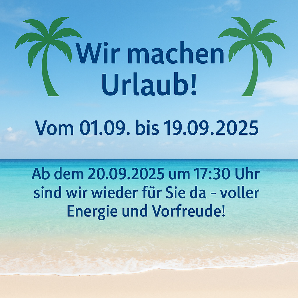 Vom 01.09. bis 19.09.2025 bleibt unser Haus geschlossen.